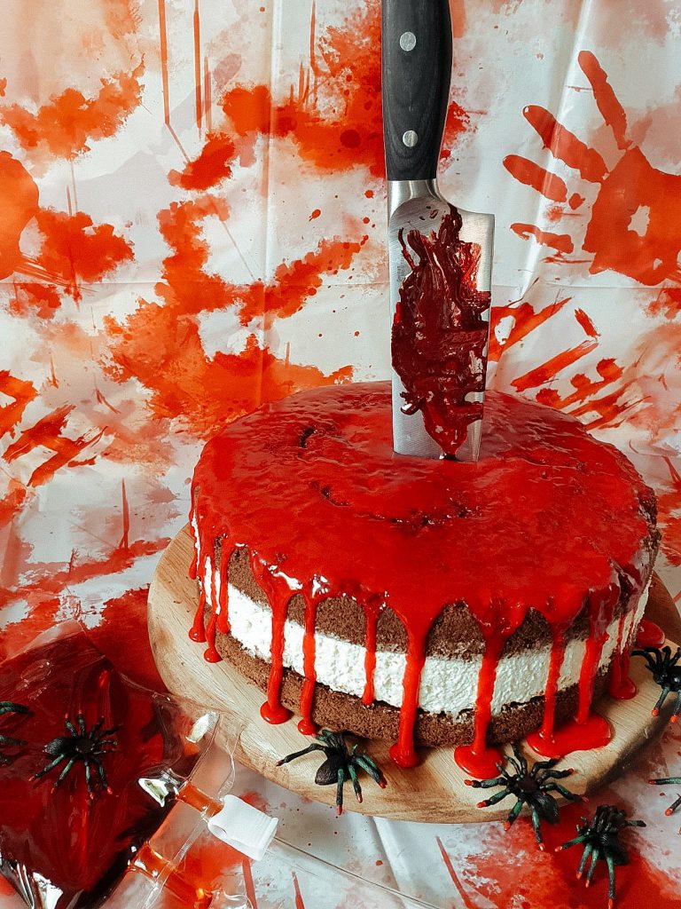 Meine blutige Messertorte für eine gruselige Halloweenparty. Sie sieht schaurig gruselig aus und schmeckt ultra lecker. Gebacken habe ich in der Stoneware rund von Pampered Chef ®👻.